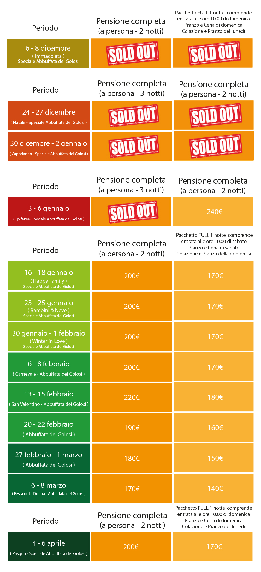 La pensione completa comprende