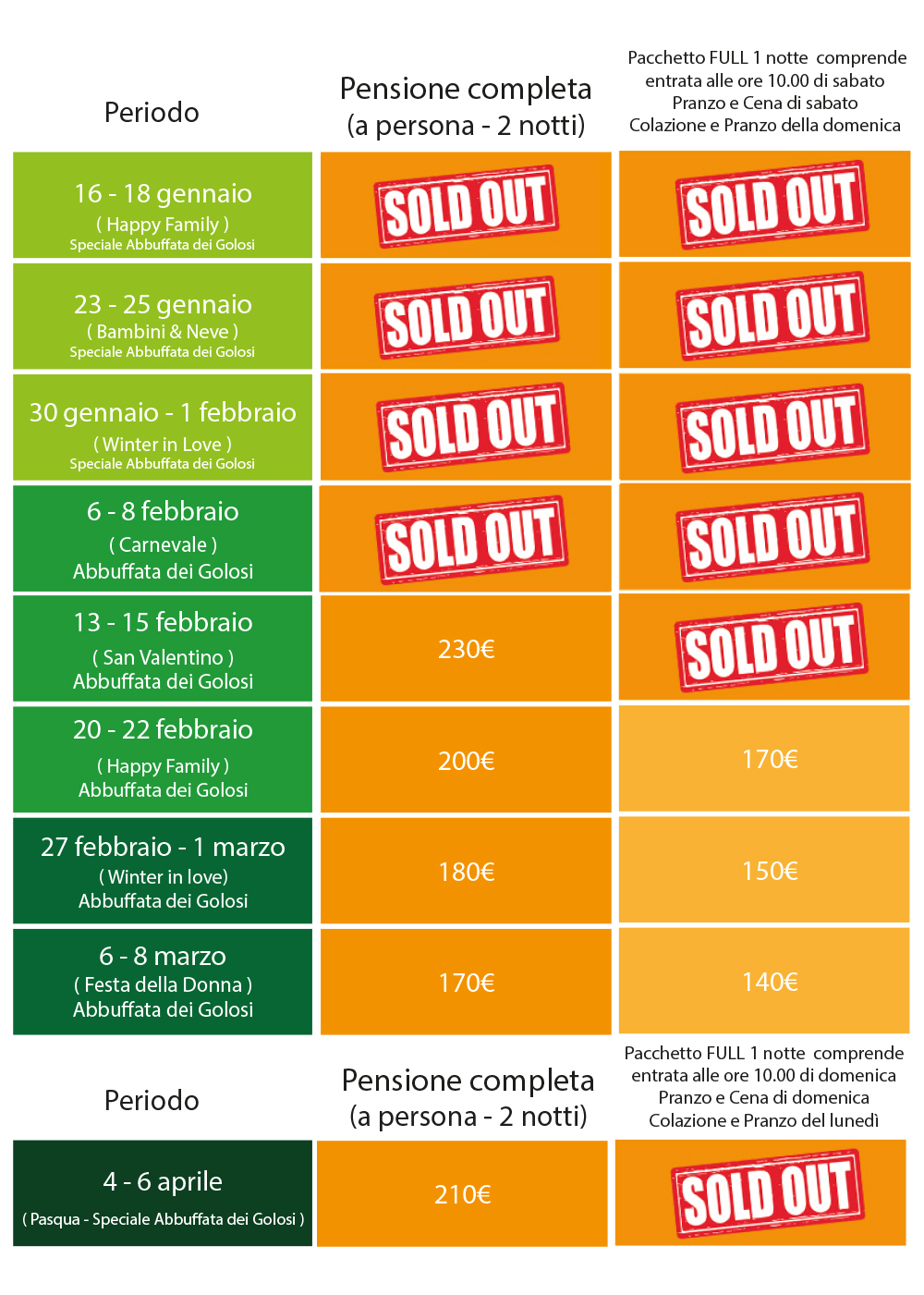 - bambini 0-2 anni non compiuti gratuiti