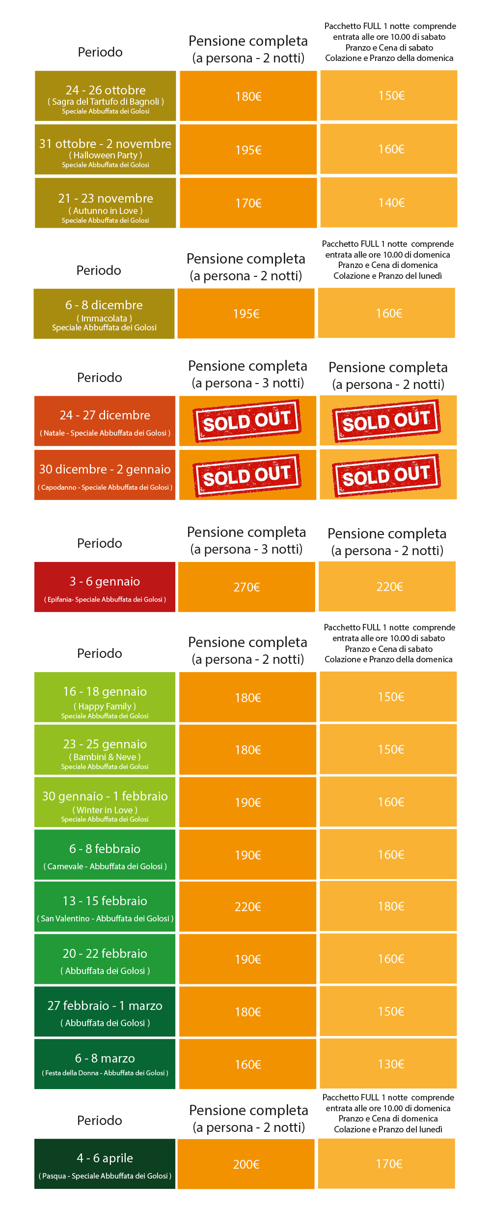- bambini 2-4 anni non compiuti sconto 70% con menu bambini